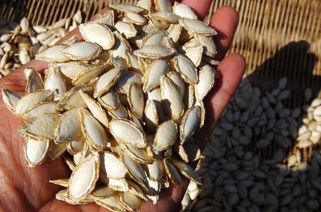 在农村,很多能吃的东西,都有它们的另一面,那就是有药用价值。南瓜子也是一种中药,古时候对它的称呼颇多,比如金瓜米,白瓜子等等,这里说到金色,又有白色,其实就是不同状态或是不同品种的南瓜呈现出来的颜色。