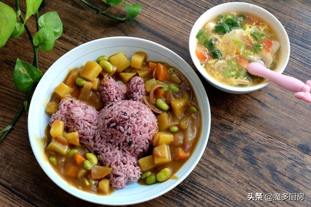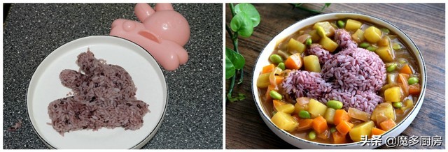 这种造型的咖喱饭,大多数的孩子都很爱吃,做法又简单,开胃又下饭,除了咖喱以外,不需要放其它的调味料,很方便,喜欢的话都可以试一试。