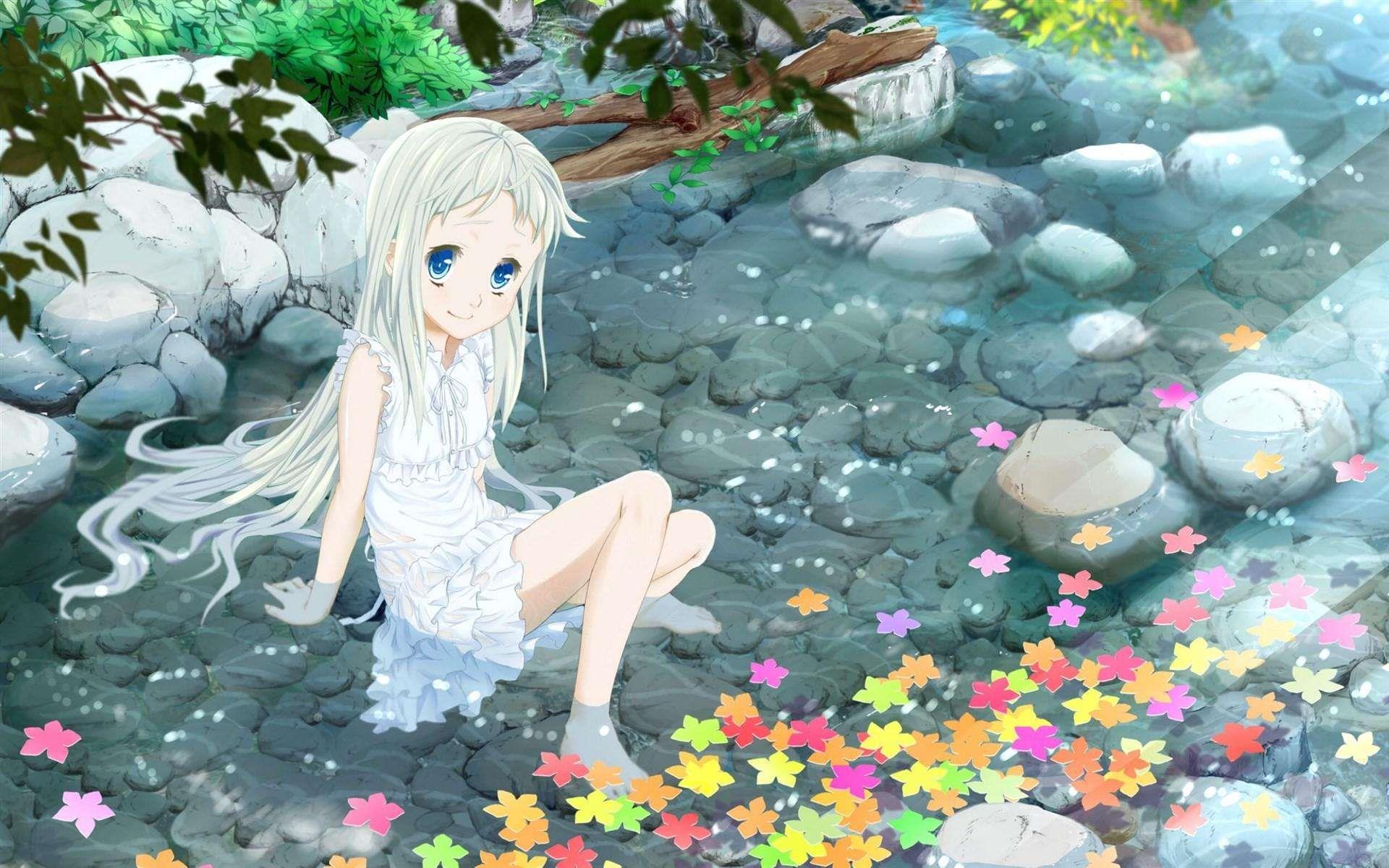 拥有白皙的皮肤,白色的直长发,性格天然,有点“少根筋”,身材娇小的少女。五年前因意外滑下山崖,由于溪河十分湍急溺水而死。五年后出现在宿海仁太面前, 并且以类似幽灵的型态存在。一开始只有仁太能看见,能碰到任何东西,也能吃饭,能打电话却无法出声。