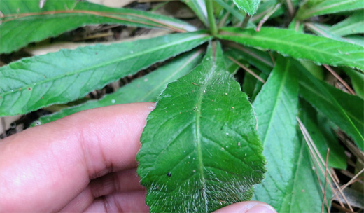 茎直立,高20-60厘米,叶子大部分贴着地面生长,矩圆状披针形,两面有粗糙毛,边缘有浅齿