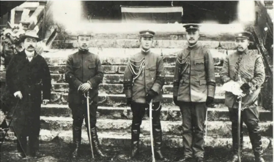 罗佩金(左二)、蔡锷、李烈钧(右一)