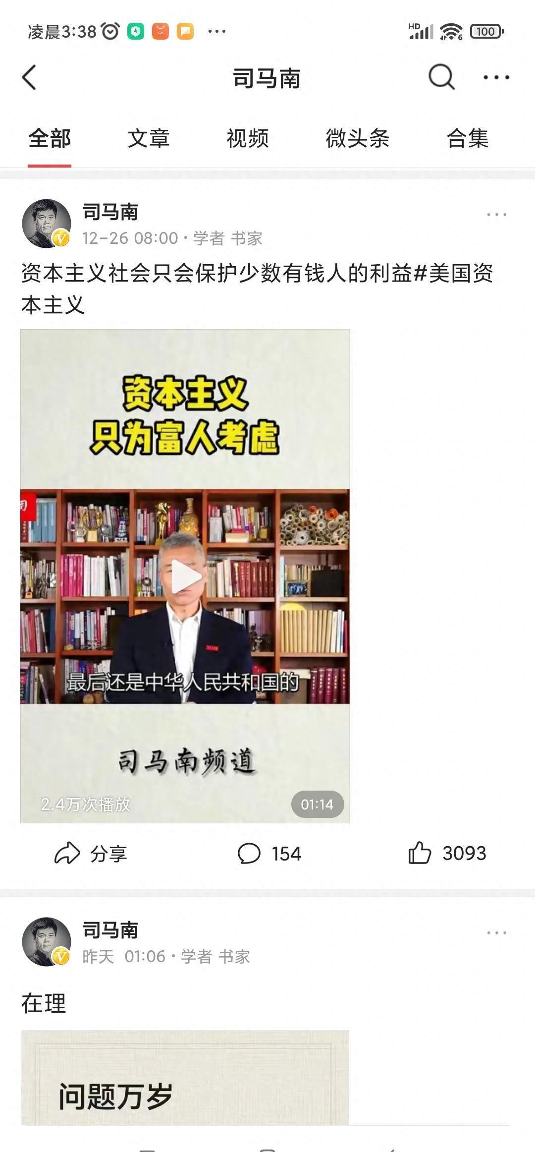 首先,我们回溯到2012年2月20日,司马南的第一次微博发言。在这条微博中,他写道:“柳传志的说法值得大家认真思考。就为这句话,我顶柳传志。”这句话反映了司马南先生对柳传志的支持,但更重要的是,他呼吁大家认真思考柳传志的言论,而不是盲目地支持。这表明司马南是一个辩证唯物主义者,用客观、辩证唯物主义的观点来看待问题。