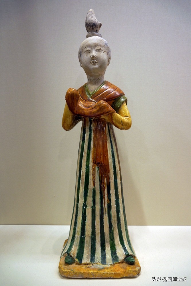 唐代三彩釉陶女立俑·陕西考古研究院藏·四库全叔拍