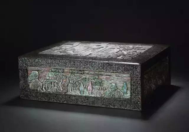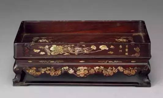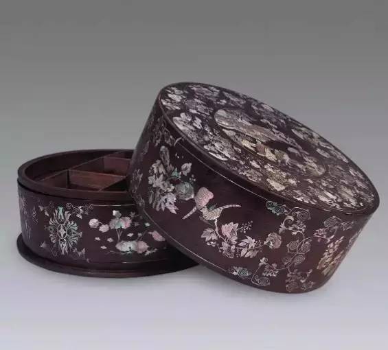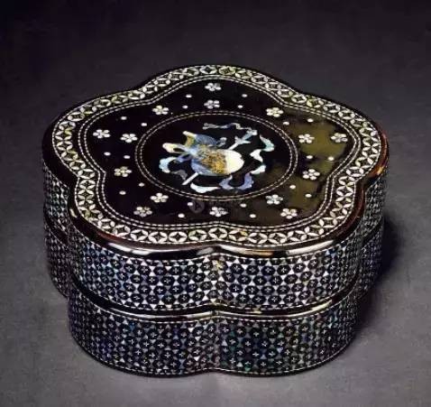 螺钿镶嵌是一种非常精美华丽的工艺,螺钿质地洁白华美,镶嵌在器物上呈现出晶莹剔透、五彩斑斓的华丽光彩,令人迷醉。“蟠螭金凿五色毯,钿螺椅子象牙床”,这是元代诗人尹廷高赞赏螺钿家具的诗句。大至床榻、柜橱,小到凳椅、木盒,螺钿艺术无所不适。