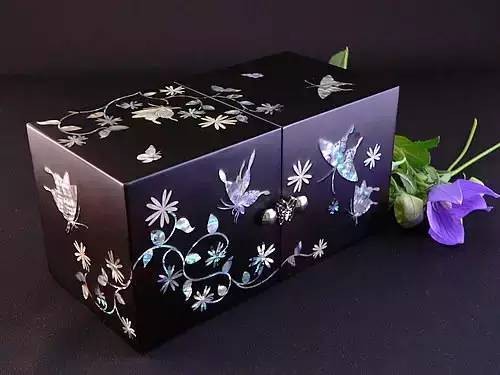 “蟠螭金凿五色毯,钿螺椅子象牙床,”这是元代诗人尹廷高赞赏螺钿家具的诗句。总的来说大到床榻、柜橱,小到凳椅、木盒,螺钿艺术无所不适。以其天生丽质、色彩斑斓、缤纷多彩的艺术价值和收藏价值深受人们喜爱。