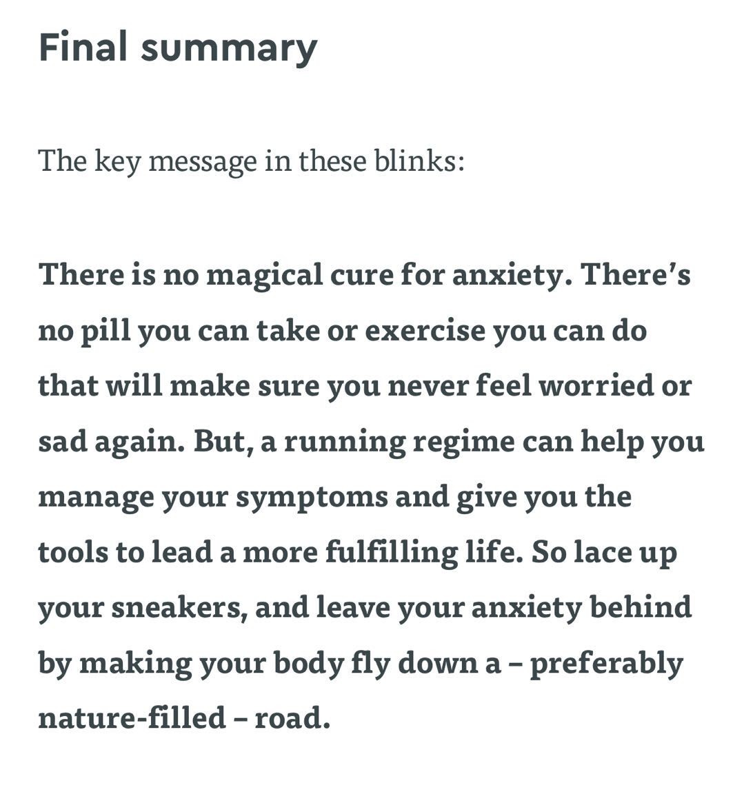焦虑症没有神奇的治疗方法。没有什么药可以让你服用或锻炼来确保你再也不会感到担心或悲伤。但是,跑步可以帮助你控制你的症状,让你过更充实的生活。所以,穿上你的运动鞋,让你的身体沿着充满自然的路飞下去,把你的焦虑抛在脑后吧。