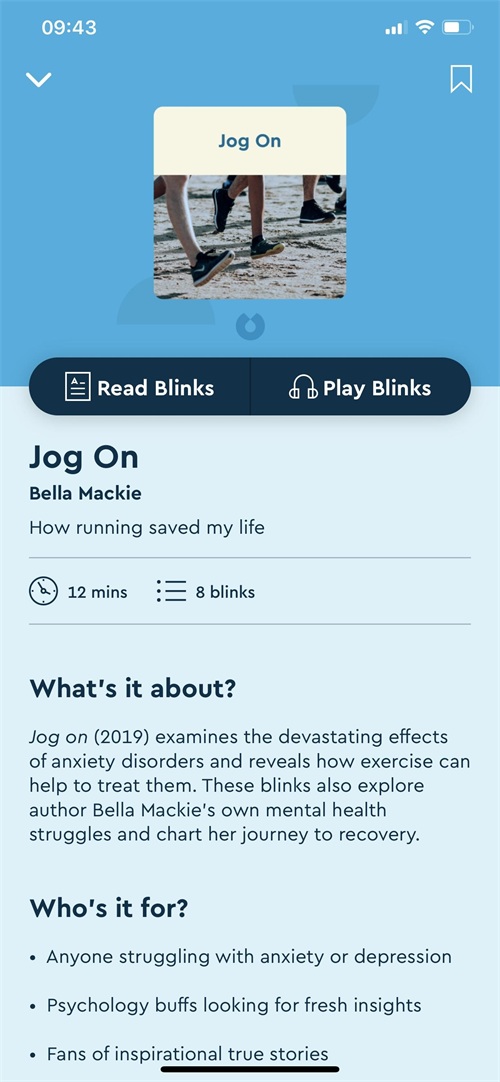 l 免费版每天推送一本书l 利用碎片时间就可以刷完一本书,了解一个新的概念l 配有真人原音朗读l 书籍偏重技巧、干货、人文科学类的,对知识体系的一个补充l 书籍都是比较新的,很多还没有中文版l 可以练阅读和听力