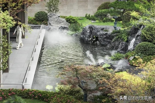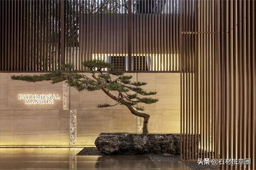 03/ 松的选择,一棵好松首先看树杆的形的苍劲杆、树枝的飘逸感,然后是和石头整合处于场景中的画面感。现在的整体感受很有国画的意境和画境,树杆的形苍劲感、树皮的质感,和黑山石的厚重感,非常匹配,达到了设计的最初意图。
