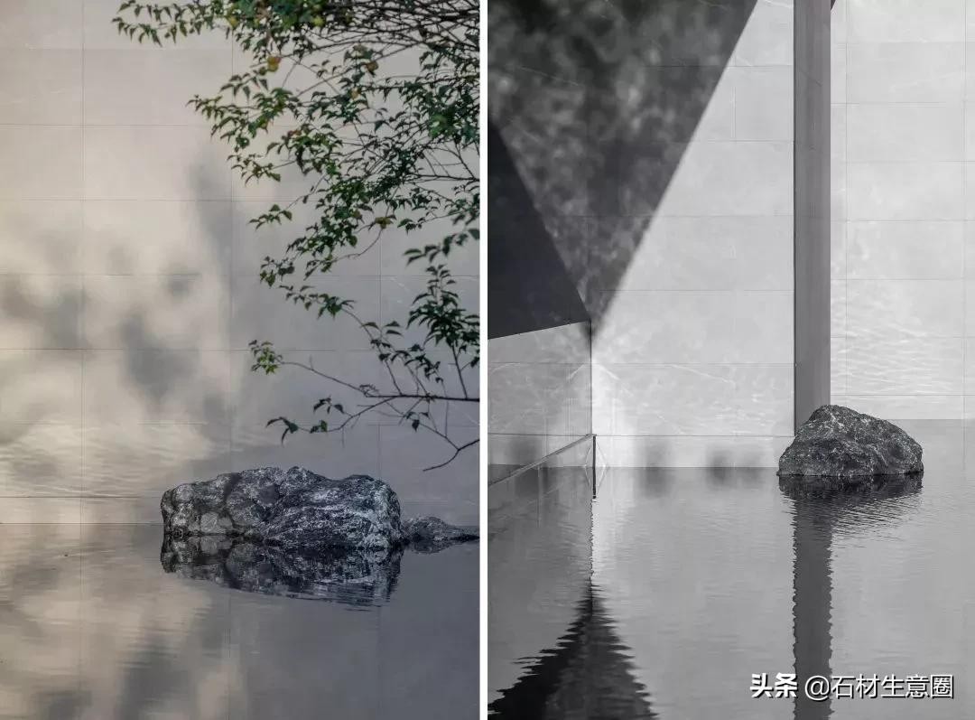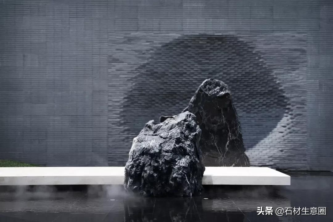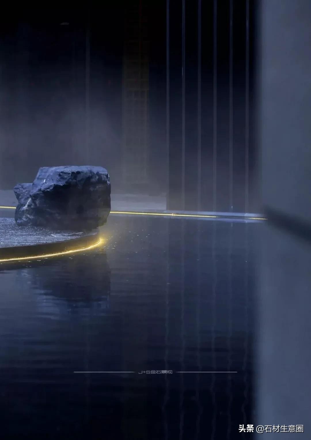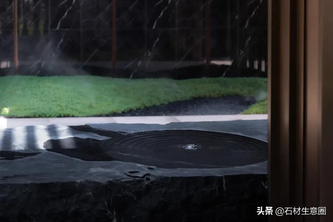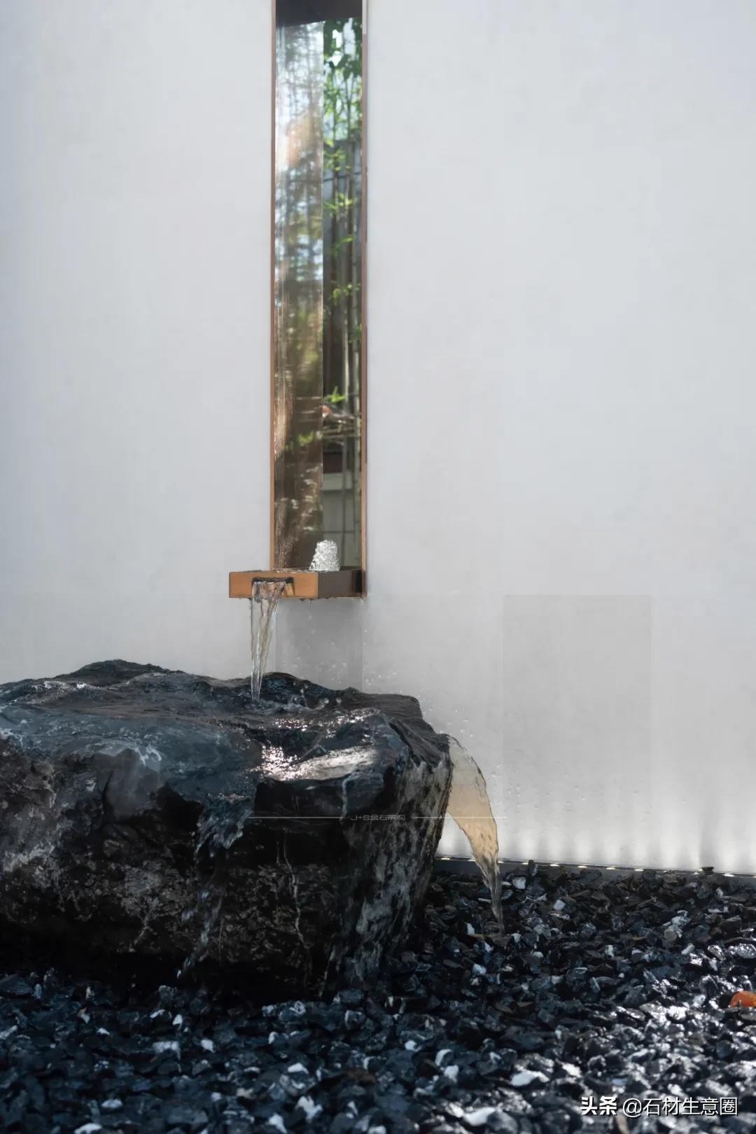 以山石之道,观自然之道。庭中每块黑山石纵横高低各不相同,令庭园焕发出安静平和,内藏深远之感。设计更以石面精琢泉涌流动之姿,细腻微声地与场地产生对话。