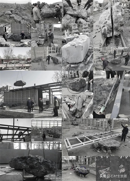 01/ 黑石的选择,江西宜春现场选石,按图纸测量、定位,在现场又经过多轮调整。