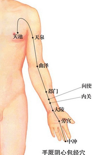 心包经从心脏的外围开始,到达腋下三寸处,沿着手臂内侧中线止于中指。经常敲打心包经,有解郁解压的效果。