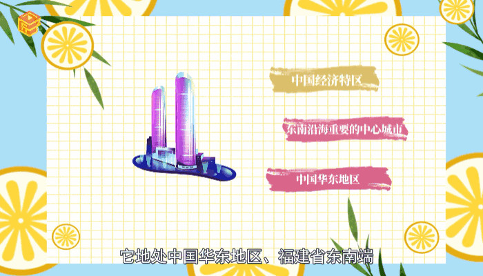 厦门是国务院批复确定的中国经济特区,也是东南沿海重要的中心城市。它地处中国华东地区、福建省东南端,隶属于福建省。