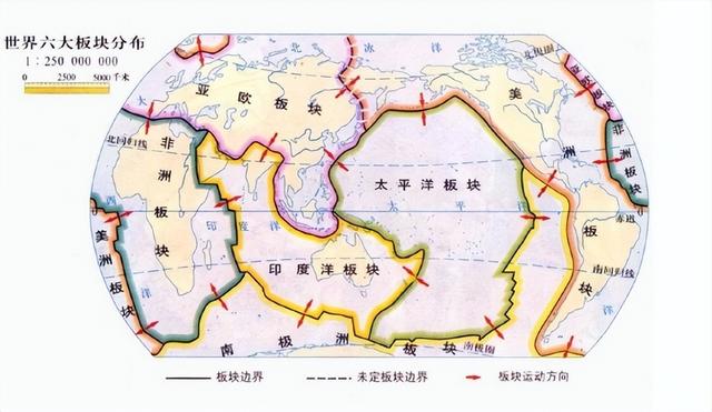 世界六大板块挤压情况,可见日本东边全线位于地震带中