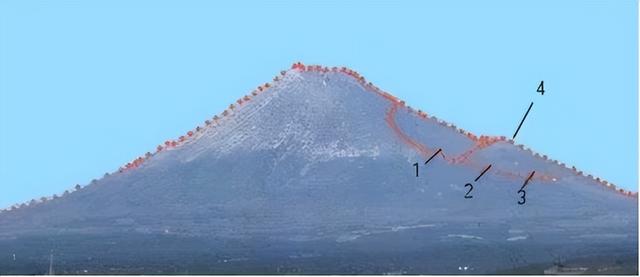 1707年12月16日日本富士山火山大喷发,从上图4处喷出