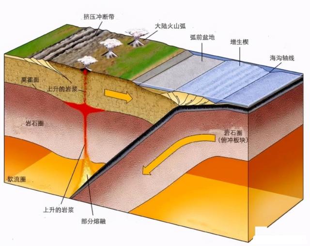随着板块运动过程中的聚合、分离,在这一过程中,密度高的板块就会下沉,然后在地下高温的作用下,形成岩浆库。