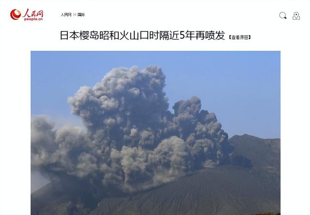 人民网报道日本樱岛昭和火山口时隔5年再次喷发