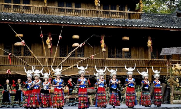 4、苗族:男子一般都穿对襟或左大襟的短衣,下穿长裤,系大腰带,头缠青色长巾。妇女大多穿大领短衣和百褶裙。山区苗族的住宅建筑大多是“吊脚楼”,它是按照山坡的自然地势,在下方和上方分别竖立较长和较短的木桩支撑,在桩上铺楼板建筑。楼上住人,楼下堆放杂物或关家畜。