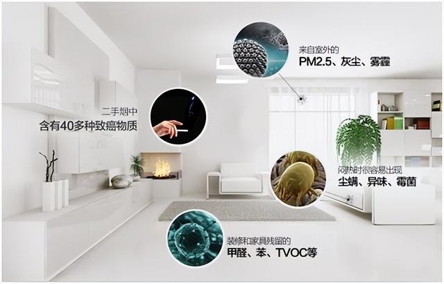 另外,德国精工·诺森柏格实验室的一项研究表明,室内空气中会存在大量的化学气态污染和微生物污染。比如宠物、人类的毛发和皮屑、细菌、病毒、虫螨等污染物,这些微生物污染物非常细小,极易进入人体呼吸系统,同时由于室外的渗透和我们在日常生活中,也会产生大量的灰尘、颗粒物等污染物。可以说我们的室内空气污染物是非常复杂的。