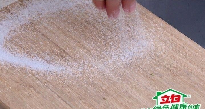 2、食盐:将食盐涂抹在案板上面,放置一段时间后用清水清洗干净,再用干布擦干净。既可清洗案板也可防止发霉。