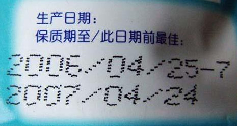 此日期前最佳(Bestbefore):超过保质期就不新鲜了,但未必会变坏,例如面粉、薯片、可乐等。