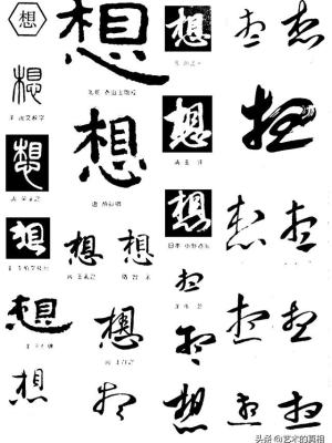 相,既是声旁也是形旁,表示容貌、形象。想,金文(相,容貌、形象)+(心,存念),表示心存其容其貌。造字本义:动词,心存其容其貌,追思、怀念。篆文承续金文字形。隶书将篆文字形中的“心”写成楷书的。自虑为“思”;念他为“想”。
