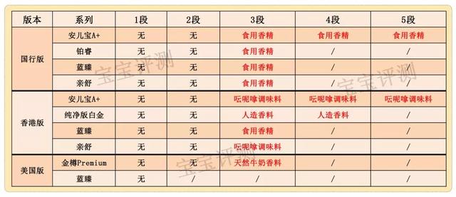此外,美赞臣3段及以上都有添加香精,虽然不会有安全性方面的顾虑,不过会加重宝宝的口味,容易造成宝宝偏食或难以接受清淡的奶粉,这属于扣分项。具体情况如下图。