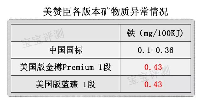 矿物质不符合国标的情况出现在美国版金樽Premium1段和蓝臻1段中,美国奶粉量高的铁含量普遍比中国的都要高,美赞臣孕妇奶粉怎么样?。具体情况如下图。
