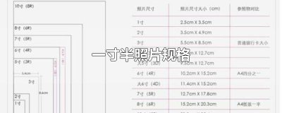 一寸半照片规格 一寸半照片的规格尺寸是3.3cm×4.8cm。照片尺寸的单位一般是英寸,1英寸≈2.54厘米,一寸半的照片通常被称为大一寸。采用一寸半的照片的例子有中国护照和旅行证等,...