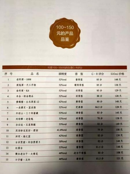 100元/瓶左右的白酒有很多选择,因为中国白酒市场品牌多如牛毛,让人眼花缭乱不知道如何选择,而且不同地区的饮酒口味有所不同。所以,下面给大家总结了100元左右很多款白酒,涵盖了大部分香型和品牌,仅供大家参考!