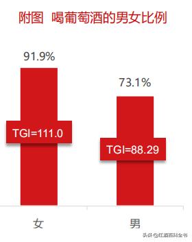 虽然自饮与朋友聚会选择葡萄酒的消费者变多,但愿意选择葡萄酒送礼的却仅有 33.8%。葡萄酒在送礼圈的落寞还是与葡萄酒的主要受众有关。根据调查显示,91.9% 的女性消费者喝葡萄酒,比男性消费者高出近 20 个百分点。但送礼的对象通常为男性,因此葡萄酒便不能作为最佳选择了。