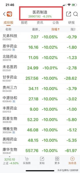 首先,要弄清一个事实,今天盘面上实际不只是贵州茅台快速跳水大跌,整个酿酒行业和医药、医疗行业都是跳水暴跌,很多个股跌停。