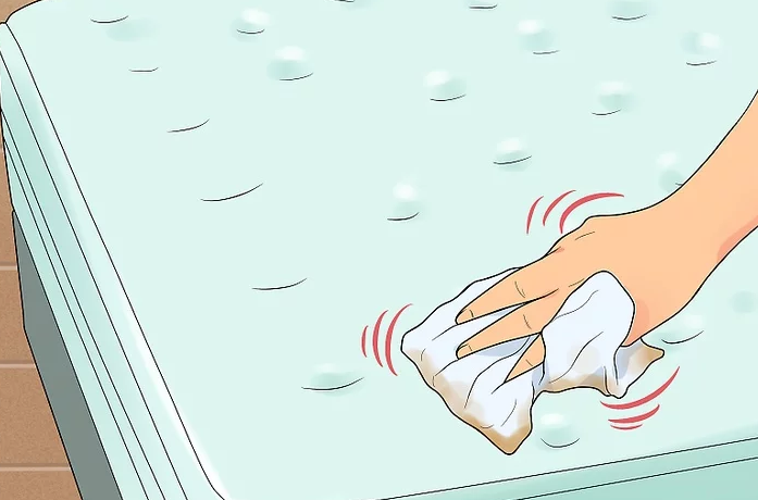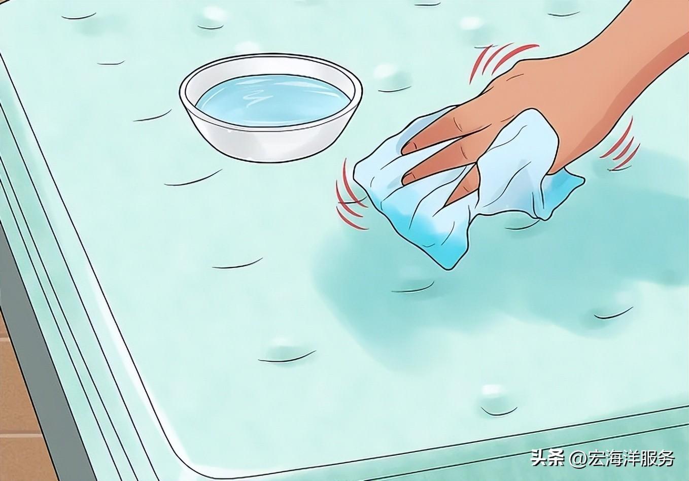 如果有任何顽固的干泡沫残留在床垫上,用白布蘸取双氧水,轻轻擦掉它们。