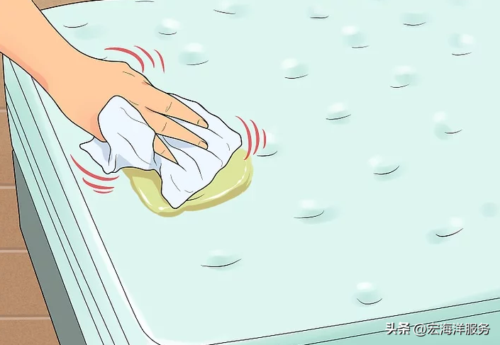 2、用双氧水溶液轻擦尿渍。用白色的抹布蘸取溶液,然后轻擦尿渍,把它清除干净。床垫彻底风干后才能再次使用。