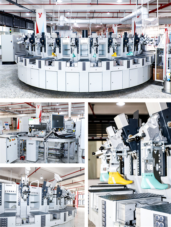 2022年,意尔康创新产业园正式投入使用,引进了世界制鞋机械设备领域的先驱德国德士马流水线,使生产工艺再上台阶。