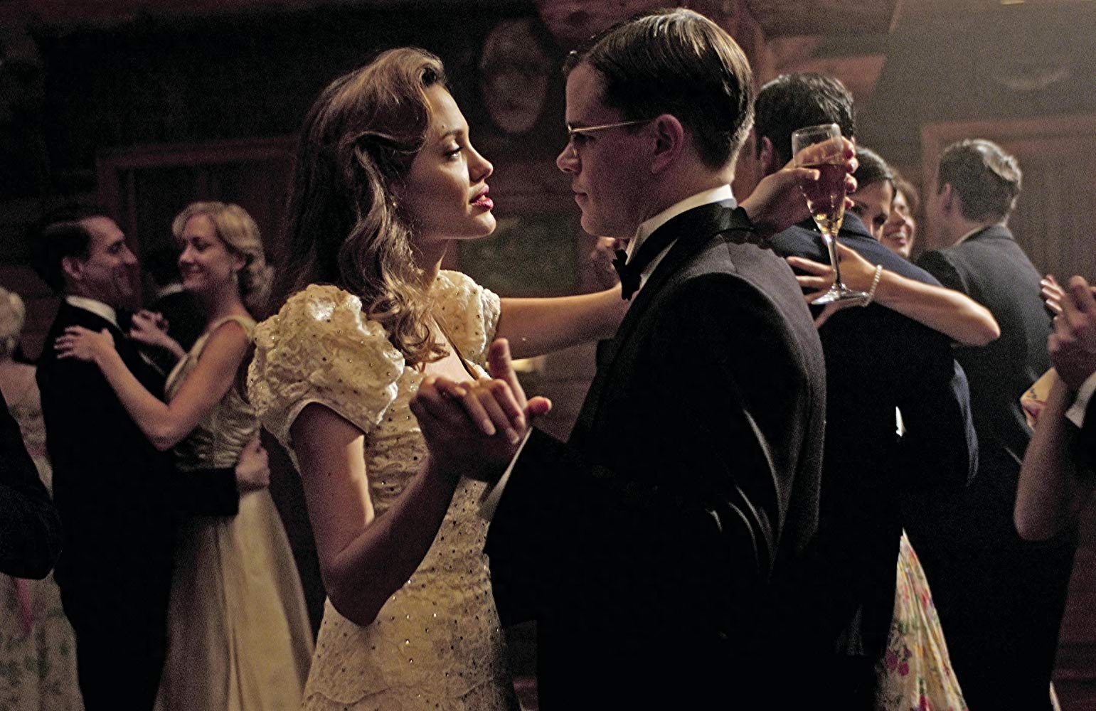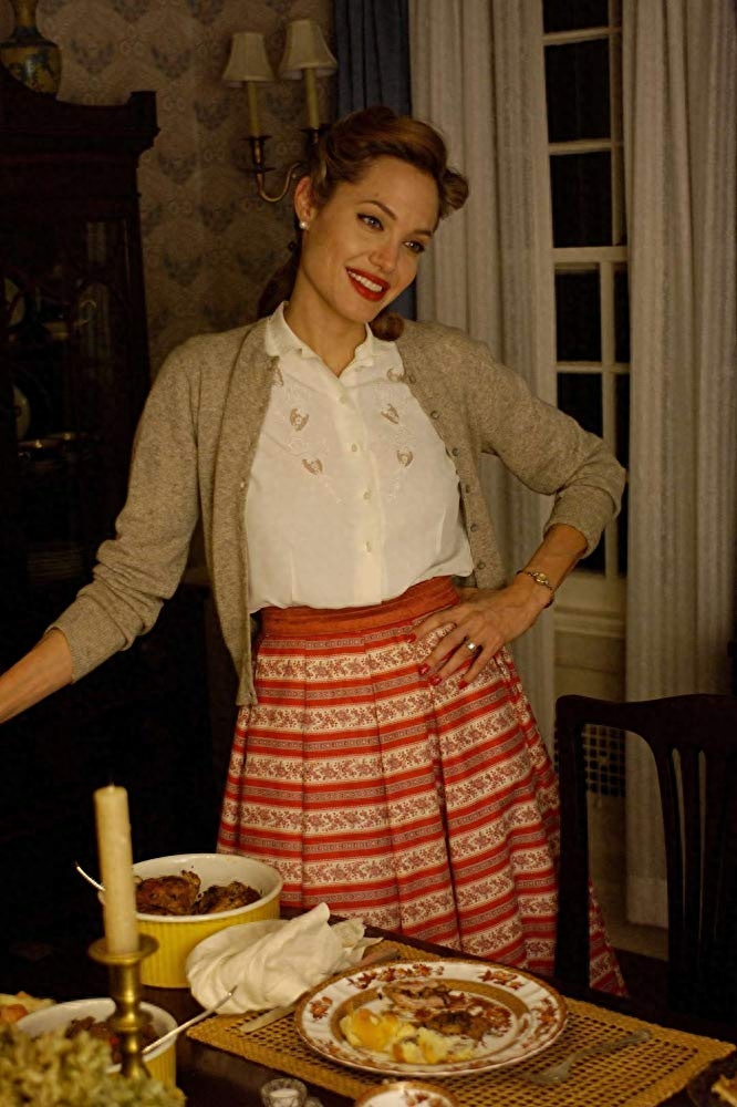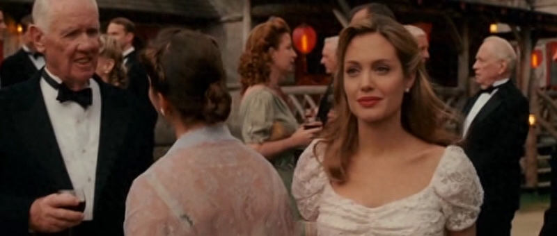威尔逊的妻子由安吉丽娜·朱莉扮演,在这个交织着政治、权力、阴谋与矛盾的男人故事里,风骚艳丽的朱丽丝毫没有削减魅力。典型的一幕是朱莉拿着酒杯双手圈戴蒙的肩头,似乎在挑逗他,大胆炽热的眼神与外形憨厚略显木讷的戴蒙形成鲜明对比。
