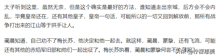 这几句含义深刻的话似乎在预示着梅长苏最后死了,但是又似乎有别样的深意,“去时遥望狼烟、跃马扬鞭”以及“永生不死”几个字在预示着他最后战死了。