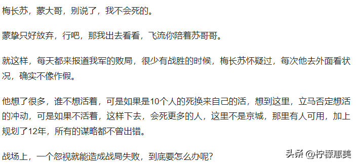赤焰军7万人死于梅岭,那里埋葬了最精锐的军人,那里战将无数,加上祁王被冤死,梅长苏也就是林殊废了,谢玉这个“护国伪柱石”已经死了,言候是个靠嘴皮子打仗的人,算了算,真的好像没人可用了。