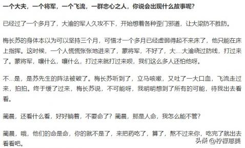 梅长苏被抬着出去了,军医忙碌着,地上,床上,走道上到处都是受伤的人,梅长苏知道,失败的后果,可是他没想到对方这么能耐,这个阵法是他专门为大渝设的,心里演练了N遍,不知道为何会这样,他想去战场看看,可是这身体根本就不行。