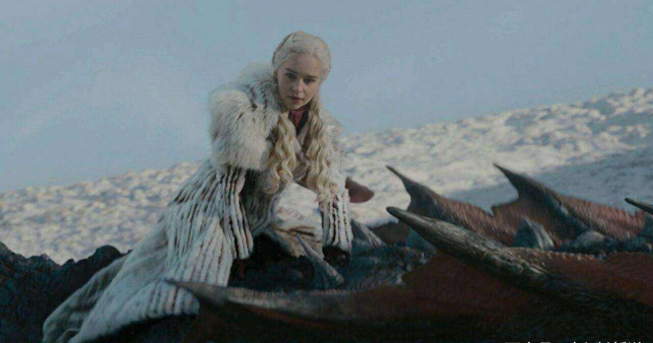 最后一个镜头是雪诺和丹妮莉丝在卓耿的背上看着阵亡的北境将士和雷哥的尸体在龙焰中燃烧,这场战斗两败俱伤。