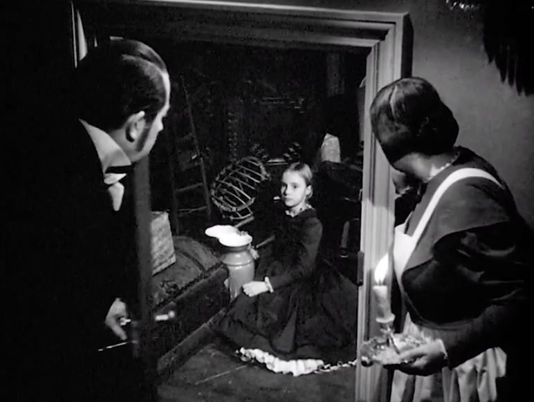 院长将简放在凳子上,向众人宣布,简是邪恶的代表,所有人都要对她心生提防。这种攻击对孩子来说是一种极大的侮辱,简被罚站一天,不久后,一个叫海伦的小女孩递给了他一块面包。