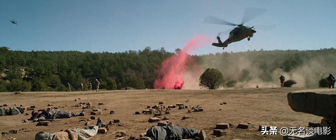 电影出场的战斗机——“CH-47支奴干直升机”,“美国陆军”广泛使用的一种中型运输直升机,有两个发动机和两个螺旋桨。一个近10米长、2米高的大主舱一次可以容纳44名士兵或2辆吉普车!