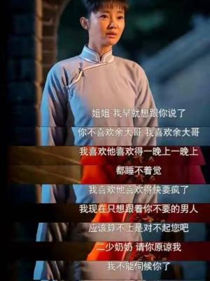 恋儿不敢和大奶奶争辩,夜里对着镜子气呼呼片尾地说:我和九儿哪里不一样?就你那样的哭了人,活该没人要曲。