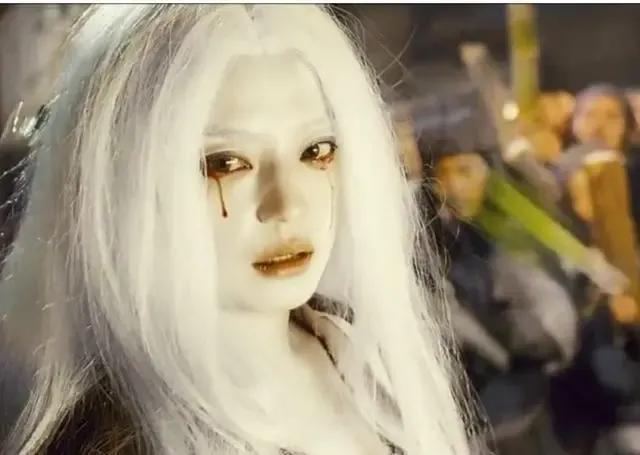 佩蓉遵守约定喝下毒酒,变成了一个银发白脸的女妖。