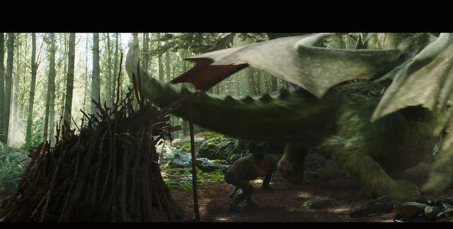 巨龙找到了小女孩家,看到他们对男孩特别好,教他刷牙陪他吃饭,于是巨龙离开了,可是小男孩太想念森林和巨龙,于是小女孩一家人带着他回到了森林,巨龙也接受了小女孩一家,可是这时一针麻醉剂射进了巨龙体内,原来是伐木工想要活抓巨龙卖钱,小男孩他们让巨龙快逃,可是麻醉剂起了作用,巨龙他被伐木工们给抓走了。