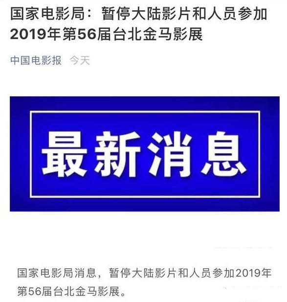 不过随着国家电影局发布通知:“暂停大陆影片和人员参加2019年的台湾第56届“金马奖”影展”,第56届台湾电影金马奖俨然成了一个笑话。