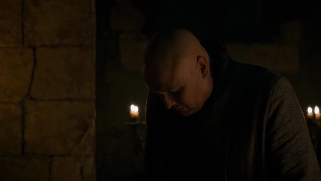 光头瓦里斯是一个见异思迁的人。他的见异思迁,只不过是在不断的寻找自己的明主,寻找真正能使人们幸福的人,瓦里斯在第四集中已经对龙女王有了不满,他已经认定琼恩雪诺才是他要找的人。如果瓦里斯向琼恩雪诺表忠心,你以为可能的结局是什么?或许只能坚定琼恩雪诺必死的心,只有死去,或许才能消除龙女王的误解,只有死去,才能消除这另一场你死我活的铁王座之争。种种迹象表明,在下一集里,琼恩雪诺的命运真的堪忧。
