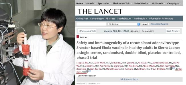 不仅为祖国贡献力量,陈薇还曾走出国门救助世界上需要帮助的人,陈薇的视角始终是关心着全人类的。2014年非洲遭受埃博拉病毒侵袭,陈薇亲自操刀率领小组研发了“2014基因型“埃博拉疫苗”,这不仅是世界首个针对此类病毒的疫苗,国际顶级医学杂志《柳叶刀》专门发表了陈薇的研究成果。