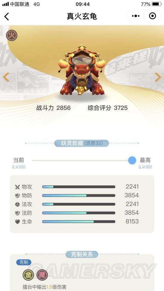 还有一张火龟的资料图片,主属性是石法术防御,但其实双防的成长是一模一样的,那么选择的时候就是高血量+高双防,技能也是Max HP%的盾,法攻凑合就行了,成长这么低,到了高等级估计什么也打不动的,资质32跟25、26估计也没多大差别的!
