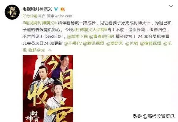 目前官方也已经证实了这个消息,今晚将是《封神演义》大结局,诸神归位,不舍再见。面对这样突然起来的消息,网友纷纷表示抗议,辛辛苦苦追了两个多月的电视剧,如今说完结就完结,而且是在还有十多集的情况下完结,难免让人心生怨念。