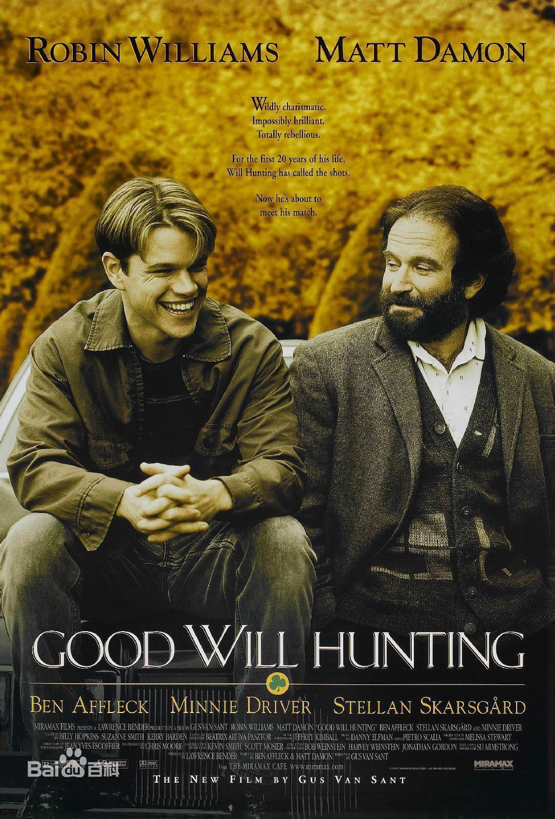 《心灵捕手》(Good Will Hunting)是一部励志剧情电影。影片由格斯·范·桑特执导,罗宾·威廉姆斯,马特·达蒙等主演。影片讲述了一个名叫威尔(Will Hunting)的麻省理工学院的清洁工的故事。威尔在数学方面有着过人天赋,却是个叛逆的问题少年,在教授蓝勃、心理学家桑恩和朋友查克的帮助下,威尔最终把心灵打开,消除了人际隔阂,并找回了自我和爱情。